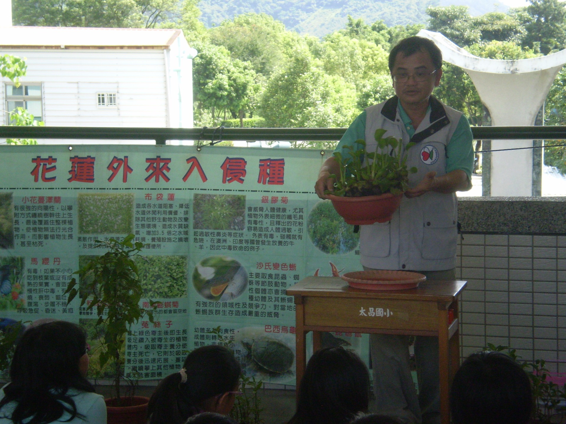 太昌國小四年級共有忠孝仁三個班級,以主題簡報、蝴蝶生命樹與外來入侵種防治三項課程分別讓三個班級以跑站的方式進行活動,其中蝴蝶生命樹的課程更是讓小朋友們以五官直接觀察體驗以認識蝴蝶生態,園區照顧蝴蝶生命樹的蝴蝶達人"阿福叔叔"親自位小朋友講解,小朋友們反應非常熱絡並爭相提出許多有關蝴蝶的問題,在工作人員細心的回應下小朋友們增加許多對蝴蝶生態的認識;另外在葉老師詳細的外來入侵種主題簡報配合阿盛老師帶領的外來入侵種實體展示與解說,小朋友們聽得非常認真還有問必答和他們生活經驗很能連結。
